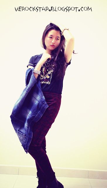 Today theme is rock and roll which inspired my "the pretty reckless song - make me wanna die" and i am addicted to this song especially when u heard it from the last year victoria secret fashion show! it makes you like a model walking on the stage LOL ,all photo are taken by melissa ( my housemate ) and edited by me :)